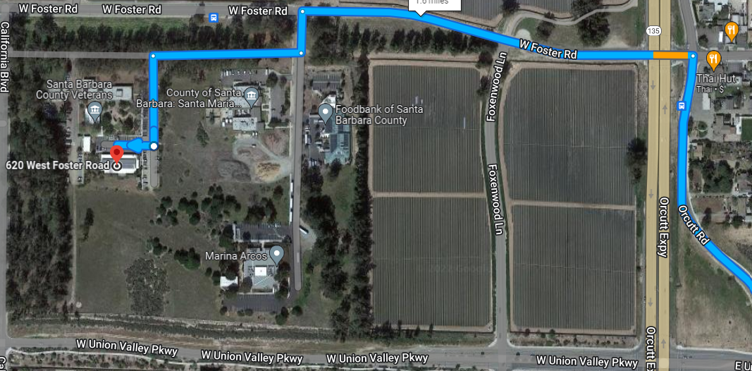 Step 1 – Heading north on Orcutt Road or Orcutt Expy CA-135, turn LEFT onto West Foster Road